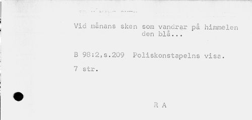 //// -*** r * '' T - * " _ . //// V; J" _ , TI * //// C //// Vid manans sken som vandrar på himmelen //// den blå... //// B 98:2,s.209 Poliskonstapelns visa. //// 7 str. //// ^ R A ////