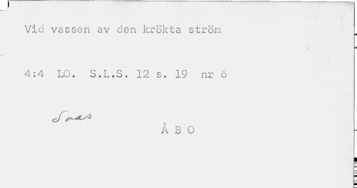 //// Vid vassen av den krökta ström 4:4 LO. S.L.S. 12 s. 19 nr 6 //// ÅBO //// ; \ ////