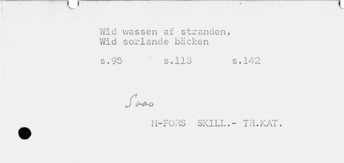 //// WId wassen af stranden, Wid sorlande bäcken //// s.95 ' $.113 s.142 //// H-FORS SKILL.- TR. KAT. ////