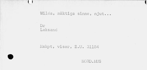 //// I //// Wilda, mäktiga sinne, njut... Di- //// Leksand //// « //// Mskpt, visor, E.U. 31184 //// NORD.MUS ////