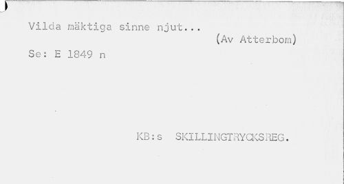//// 7 //// Vilda mäktiga sinne njut... //// (Av Atterbom) //// Se: E 1849 n * //// KB:s SKILLINGTRYGKSREG. ////