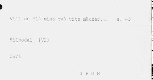 //// ) i //// Vill du flå mina två vita märrar... s. 43 //// ¦ //// L //// Silbodal (VI) F //// t //// o o t "i o o / 1 //// I F G H | //// l= E ////