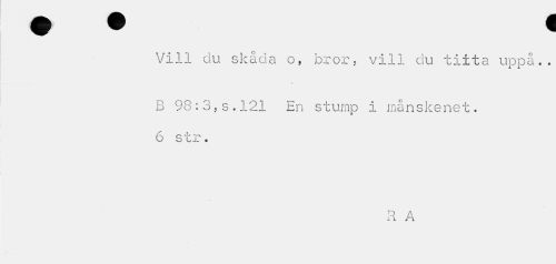//// Vill du skåda o, bror, vill du titta uppå.. //// B 98:3,s.121 En stump i månskenet. 6 str. //// R A ////