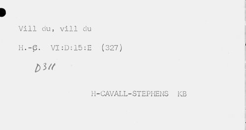 //// > //// j //// Vill du5 vill du H.-p. VI:D:15:E (327) //// £3/7 //// H-CAVALL-STEPHEMS KB ////