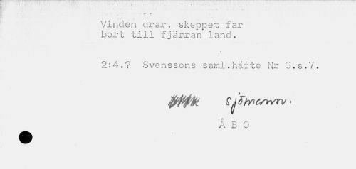 //// . . * "'¦•<'.'-¦: .• '• ... .41 ., . fci.. .j . .i , //// ' " ' "t" T* //// Vinden drar, skeppet far bort till fjärran land. //// 2:4.? Svenssons saml.häfte Nr 3.S.7. //// ÅBO ////