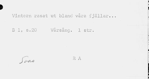 //// > i //// Vintern rasat ut bland våra fjällar... //// Bl, s.20 Vårsång. 1 str. //// i //// r^ r A //// 11 ja //// J ^-tfUO ^ ////