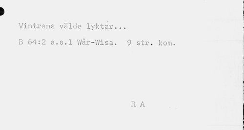 //// > I //// • • [ //// Vintrens välde lylctar... i //// r //// b 64:2 a.s.l v/år-Wisa. 9 str. kom. //// ) I //// RA ////