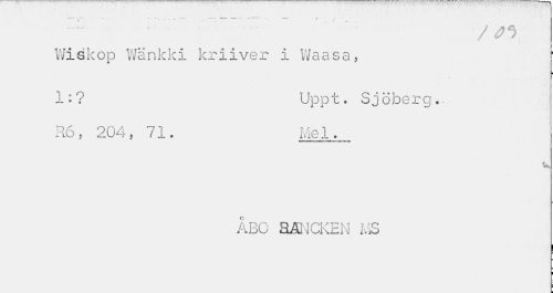 //// •w - • • _ a * , , . , --v - >•»-». T y » //// Wiékop Wankki kriiver i Waasa, //// ¦ //// 1: ? Uppt. Sj öberg. //// R6, 204, 71. Mel. //// U //// ÅBO RåNCKEN MS //// I i ////