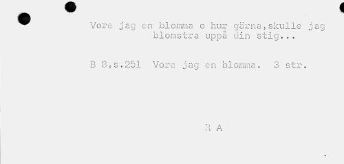//// W 1 //// ^^ Vore jag en blomma o hur gärna,skulle jag //// blomstra uppå din stig... //// B 8,s.251 Vore jag en blomma. 3 str. //// R A ////
