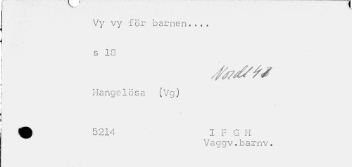 //// v //// Vy vy för barnen... //// O 1 o S lo //// Hängelösa (Vg) //// i //// Vaggv.barnv. ////