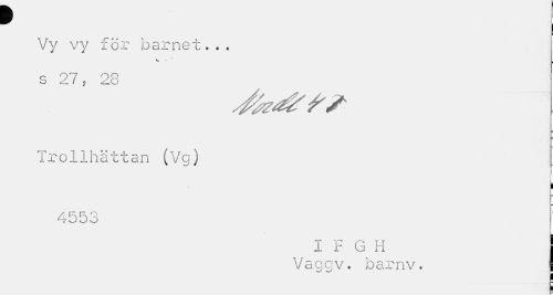 //// w //// Vy vy för barnet... //// c 97 00 //// Trollhättan (Vg) //// % //// r //// i //// 4553 //// I F G H ! //// Vaggv. barnv. I ////