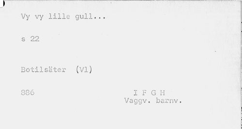 //// f //// Vy vy lille gull... s 2 2 //// Botilsäter (Vi) //// 886 I F G H //// Vaggv. barnv. ////