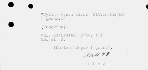 //// "Vysch, vysch barna, katten hänger i grana.a" //// v il s 3 ^ • //// Vgl. Marie stad, 9354, s.1. Mei j e1, A. //// (Katten hänger i grana) . //// U L M A ////