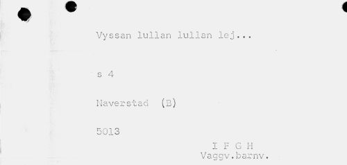 //// Vyssan lullan lullan lej... s 4 //// Näverstad (B) //// 5013 //// I F G H //// Vaggv.barnv. ////