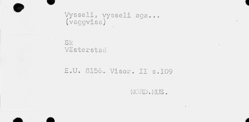 //// Vysselij vysseli aga... (vaggvisa) //// S k //// Västerstad //// E.U. 8156. Visor. II s.109 //// NORD.MUS. //// t //// ^ A A ////