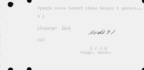 //// Vyssja nanna barnet kisse hänger i garnet... s 1 //// Långaryd (Sm) //// Aneå? y/ //// Q A O //// O O O //// I F G H //// vaggv. barnv. ////