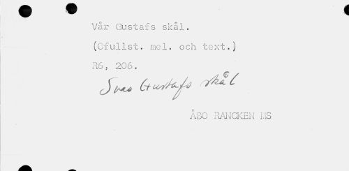 //// Vår Gustafs skål. (Ofullst. mel. och text.) R6. 206. //// Ju* //// ÅBO RANCKEN KS ////