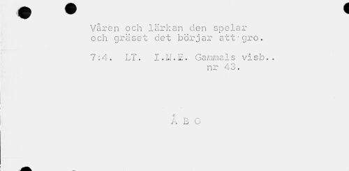 //// Våren och lärkan den spelar och gräset det börjar att*gro. //// 7:4. LT. 1.1.1. E . Gammals visb. . //// nr 43. //// o //// /'• p c //// r\ U U ////