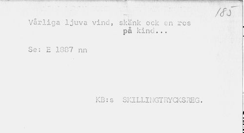 //// Vårliga ljuva vind, skänk ock en ros //// på kind... //// ¦ //// Se; E 1887 nn //// KB:s SKILLINGTRYCKSREG. //// i ¦ //// ¦ ////