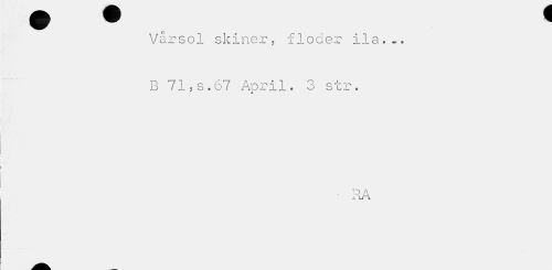 //// Vårsol skiner, floder ila... B 71, s.67 April. 3 str. //// "q a ////