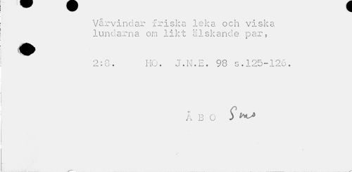 //// Vårvindar friska leka och viska lundarna om likt älskande par, //// 2:8. HO. J.N.E. 98 s.125-126. //// ÅBO 5 ////
