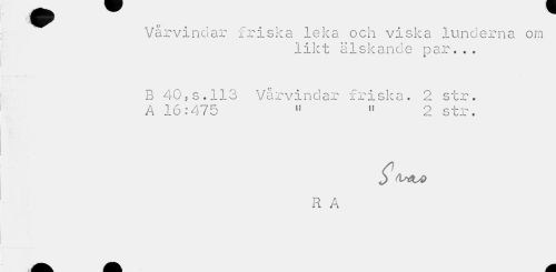 //// Vårvindar friska leka och viska lunderna om //// likt älskande par... //// B 40,s.113 Vårvindar friska. 2 str. A 16:475 » 11 2 str. //// R A ////