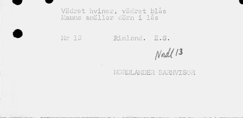 //// Vädret hviner, vädret blås Mamma smäller döm i lås //// ^HB^ 7\ -rf* • H T r» /-N //// N r 1 o ]ki n 1 a n d . E . S . //// {idti* //// ¦ NORDLANDER BARNVISOR ////