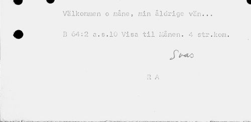 //// Välkommen o måne, min åldrige vän... B 64:2 a.s.10 Visa til Månen. 4 str.kom. //// r //// ytr-OsO //// R A //// -i. L I I ////