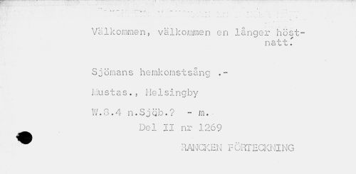 //// * b • * . • //// v . .. *¦» " - ¦- * r • « • » j t t- » r . . . ¦ //// * •• ' ¦ -S - ¦ ¦¦ t. *. * a. > . .i ^ "...¦ . ' (k //// . . . //// T* //// Välkommen, välkommen en långer höstnatt . //// Sjömans hemkomstsång //// iViustas. . Hel singby //// W.8.4 n.Sjcib.? - m. //// Del 11 nr 1269 //// ^ RANCKEN FÖRTECKNING ////