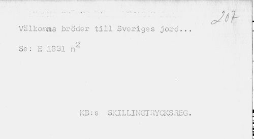 //// Valkomma bröder till Sveriges jord... j. //// 2 //// Se: E 1831 n' //// KB: s SKJ L L X NGT 11YCKS RE G • j //// ¦ //// T ////