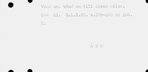//// Vänd om. vänd om till dessa dalar, //// 5:4 Ki. S.L.S.23. s.239-240 nr 104. M. //// Å B O ////
