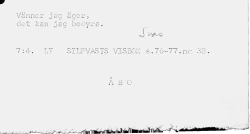 //// Vänner j ag äger , .det k a n j a g be dyr a. //// rj hfi-O //// 7:4. LT S1LFVÄSTS VISBOK s.76-77.nr 38. //// j //// Å B O ////