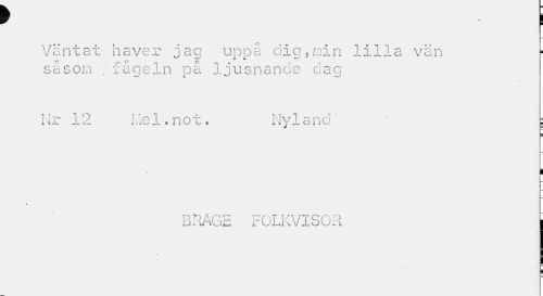 //// f ! //// Väntat haver jag uppå dig,min lilla vän såsom ; fågeln på ljusnande dag //// Nr 12 I,le 1 ? n o t • Ny 1 a n c ' ; //// i //// bpiage folkvisor i //// J- ////