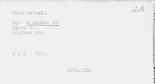 //// JJ9 //// "Väva vadmal" //// Vg . D Danser 10 B ar ne hd . ' ' Fåglurns sn. //// V F F '700. //// ; //// 11 ^^B ¦ ¦ I //// < //// NORD. Ivillo . i //// ¦ //// ! ////