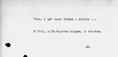 //// HYes, I am!I vara födder i Afrika ... B 70:1, s.78,Negerns klagan, 4 str.kom. //// v //// « //// ^^ RA. ////
