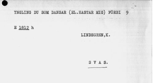 //// YNGLING DU SOM DANSÅR (EL.HASTAR MIG) FÖRBI 9 //// 4 _ " //// E 1812 h //// LINDEGREN, K. S Y A S. ////