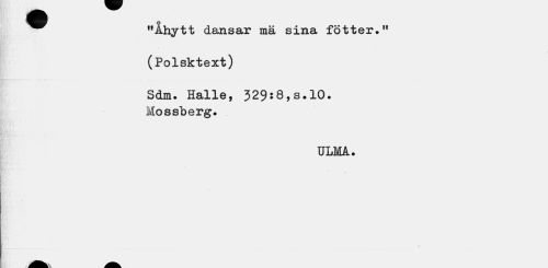 //// ^^ "Ahytt dansar mä sina fötter." //// (Polsktext) //// Sdm. Halle, 329:8,s.10. Mossberg. //// ULMA. ////