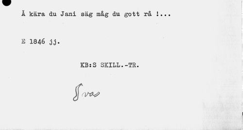 //// Å kära du Jani säg måg du gott rå !... ; //// i t //// i //// E 1846 öo- //// KB:S SKILL.-TR. //// f r //// Jow i //// i ¦ I //// ... ... ' . . ... ' , . . . u . jA ////