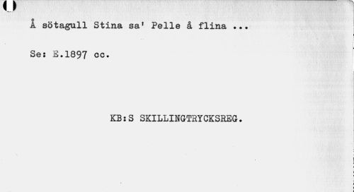 //// A sötagull Stina sa! Pelle å flina //// Se: E.1897 oc. //// i //// KB:S SKILLINGTBYCKSEEG. //// ¦ //// r « //// i | //// i //// • i i t //// 1 r //// i //// i ////