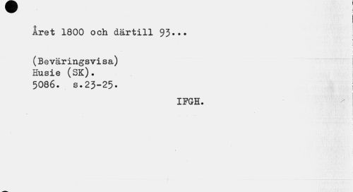 //// Aret 1800 och därtill 93... //// . \ //// i //// (Beväringsvisa) Husie (SK). //// 5086. s.23-25. //// IFGH. //// I //// 19 //// i ////