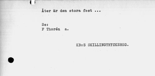 //// Åter är den stora fest //// % * //// Ses //// F Thorén a» //// KB:S SKILLINGTRYCKSREG. ////