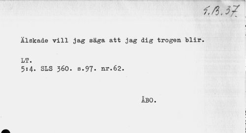 //// l.nJZ //// I //// jr | //// Älskade vill jag säga att jag dig trogen blir. //// J //// LT. //// 5:4. SLS 36O. s.97. nr.62. //// ! //// ÅBO. //// | //// i //// e //// 1 ////