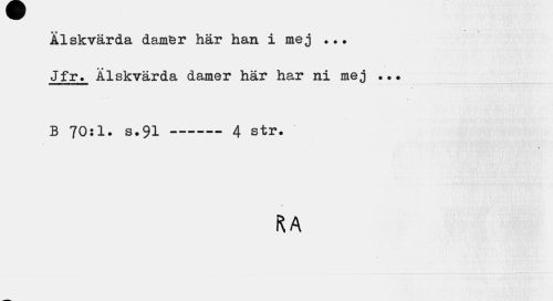 //// Älskvärda damfcr här han i mej ..? Jfr. Älskvärda damer här har ni mej ... //// B 70:1. s.91---4 str. //// RA ////