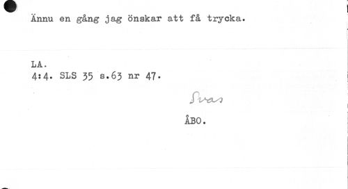 //// Ännu en gång jag önskar att få trycka ... //// r //// LA. //// 4:4. SLS 35 s.63 nr 47. //// ÅBO. ////