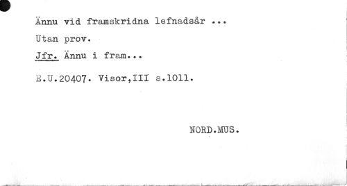 //// Ännu vid framskridna lefnadsår ... Utan prov. //// i //// Jfr. Ännu i fram... //// E.U.20407. Visor,III s.1011. //// ! //// • " I //// 1 //// NORD.MUS. //// v //// i t ////