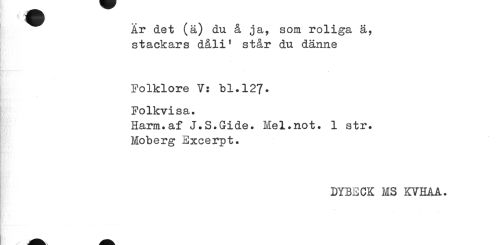 //// Är det (ä) du å ja, som roliga ä, stackars dåli1 står du dänne //// Folklore V: bl.127-Folkvisa. //// Harm.af J.S.Gide. Mel.not. 1 str. Moberg Excerpt. //// DYBECK MS KVHAA. ////