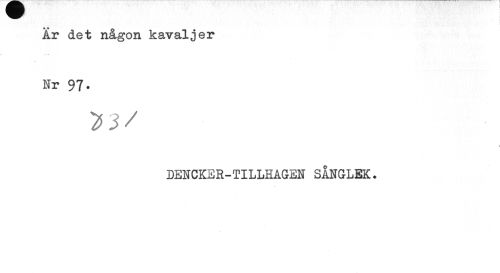 //// År det någon kavaljer //// / •# //// Nr 97. //// 23/ //// 1 //// DENCKER-TILLHÅGEN SÅNGLEK. ////