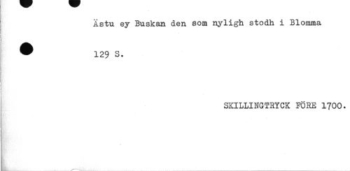 //// Ästu ey Buskan den som nyligh stodh i Blomma //// ® 129 S. //// SKILLINGTHYCK FÖRE 1700. ////