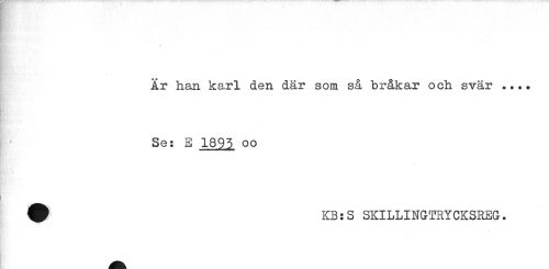 //// / //// År han karl den där som så bråkar och svär //// Se: e 1895 oo //// 9 kb:s skillingtrycksreg. ////
