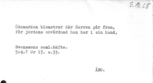 //// /. o. c 6 //// ödemarken blomstrar där Herren går fram, för jordens omvårdnad han har i sin hand, //// Svenssons saml.häfte. //// 5:4-? Hr 17. s.33. //// ÅBO. //// I //// I ////